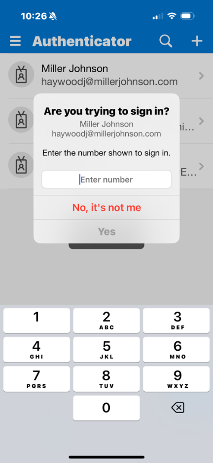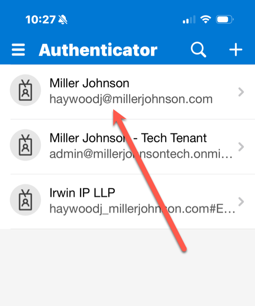 On your phone, you need to launch the Microsoft Authenticator app and tap on your Miller Johnson account.