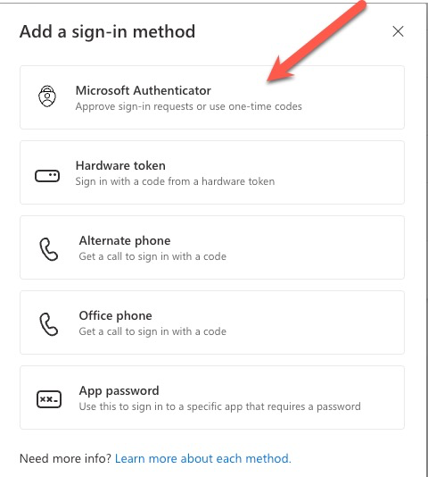 Choose Microsoft Authenticator App